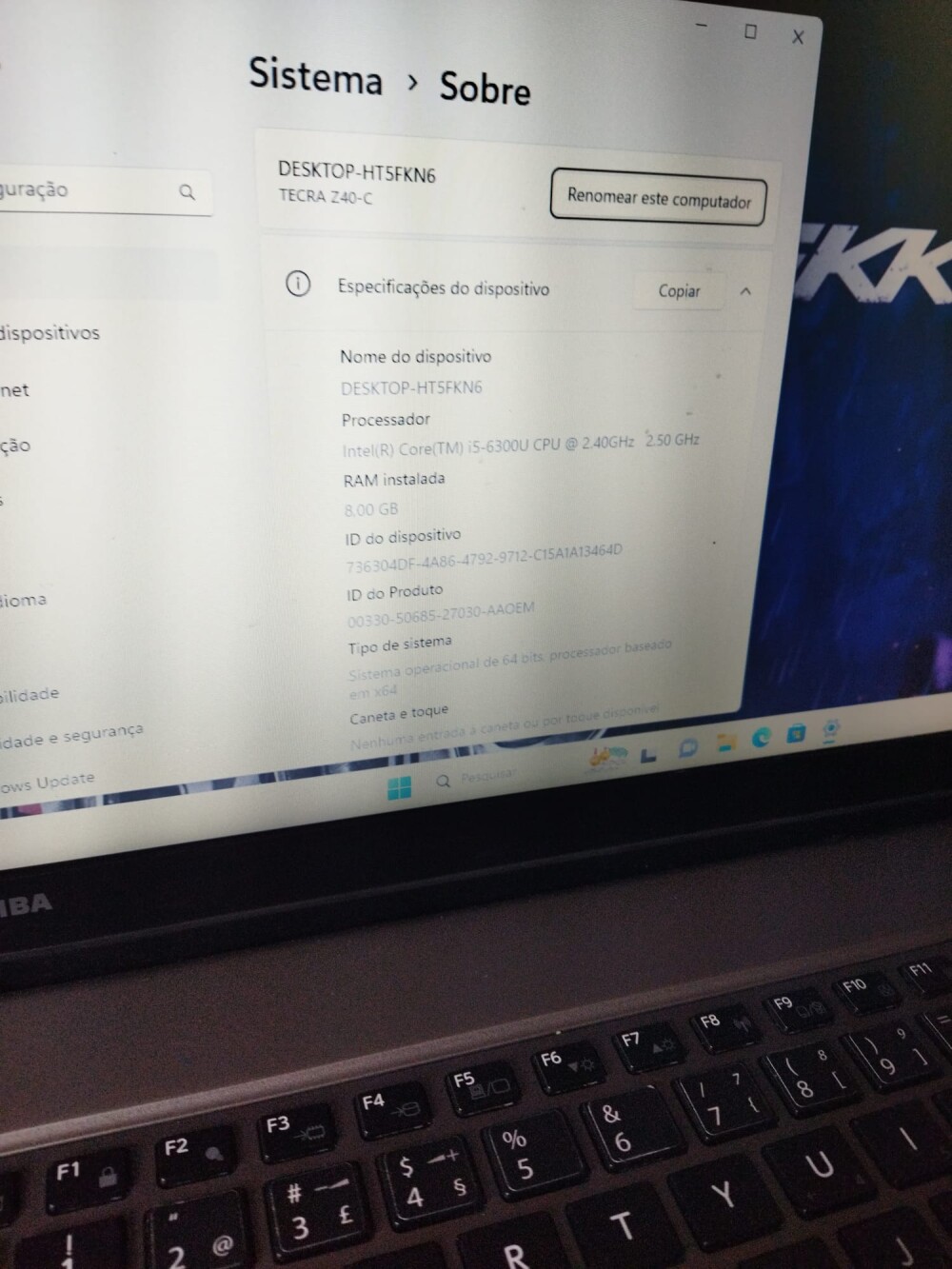 Portátil Toshiba Z40-C Intel Core i5-6 Geração