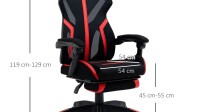 Vinsetto Cadeira de Gaming com Apoio para os Pés Retrátil Cadeira de Escritório Reclinável com Apoio para a Cabeça e Altura Ajustável 65x65x119-129cm Preto e Vermelho